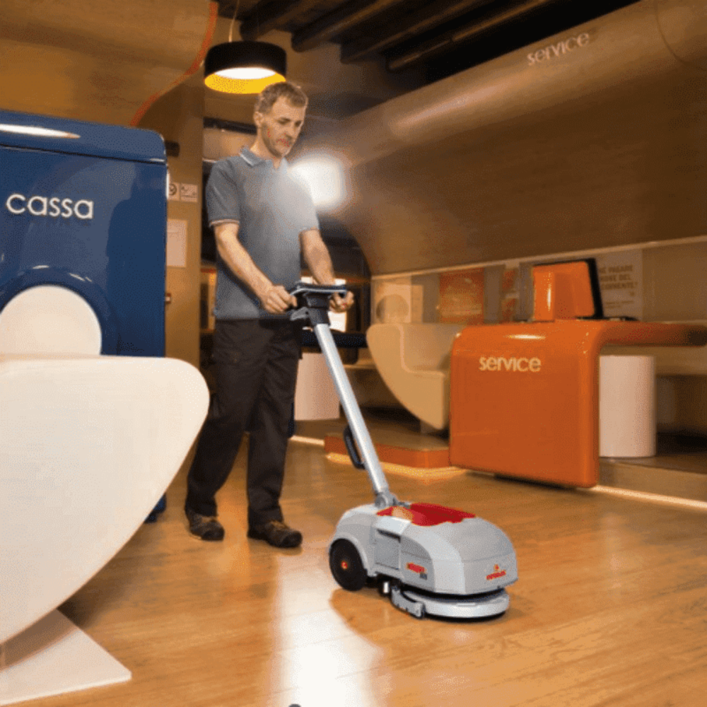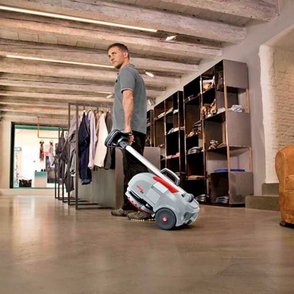 Datorită dimensiunilor sale compacte, mașina de spălat pardoseli Comac Vispa XS este soluția ideală pentru curățarea podelelor restaurantelor fast-food, barurilor, magazinelor, micilor întreprinderi comerciale și birourilor.